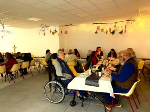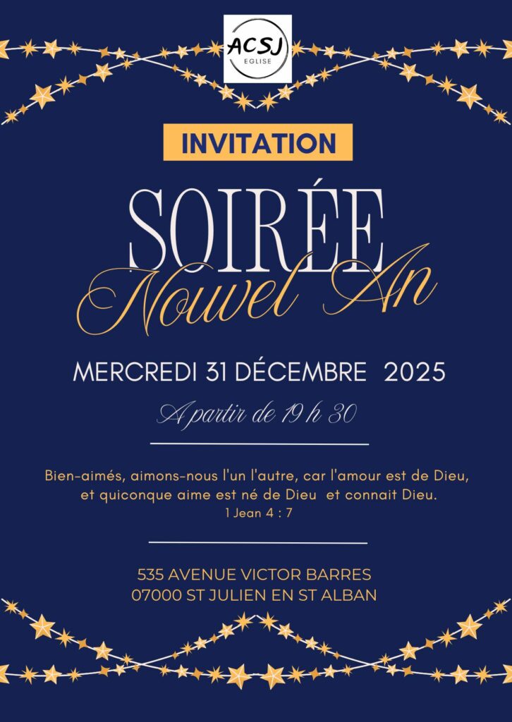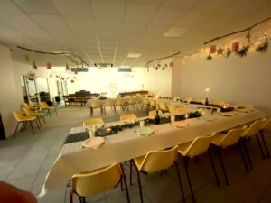 Le 31 décembre 2025, nous nous sommes retrouvés à l’église pour une belle soirée mêlée de joie et de gourmandises. Chacun avait apporté ce que son cœur lui disait que nous avons mis en commun et nous avons bien profité de tout !