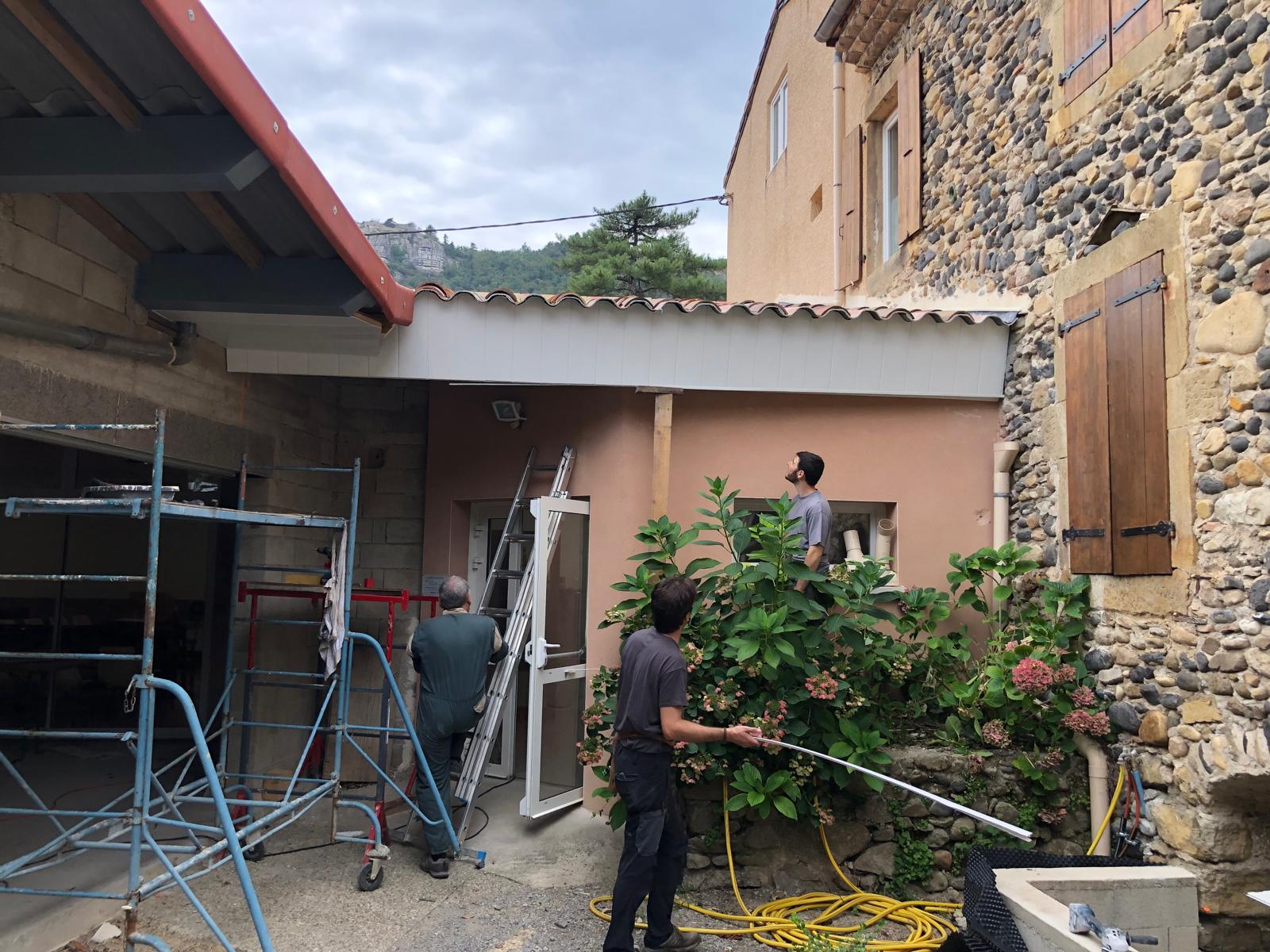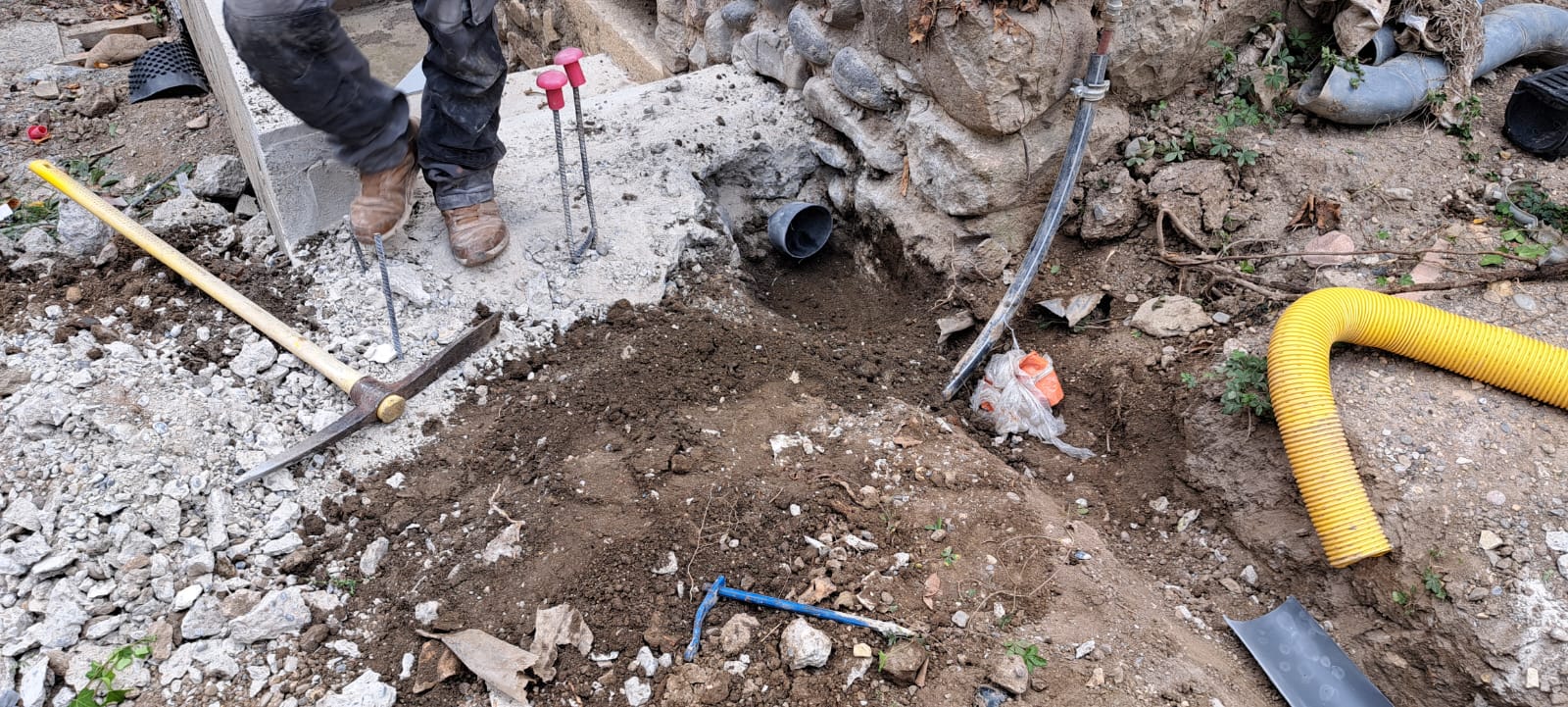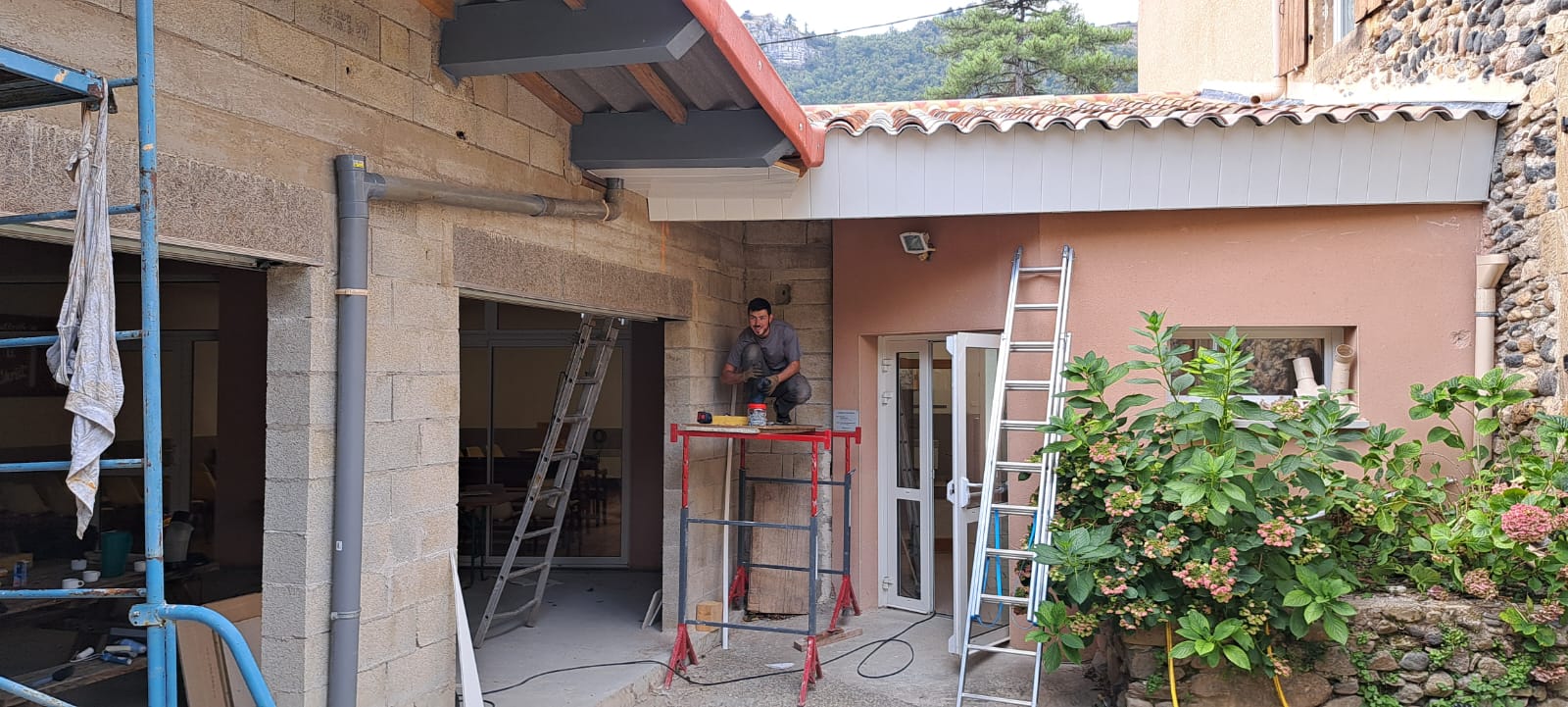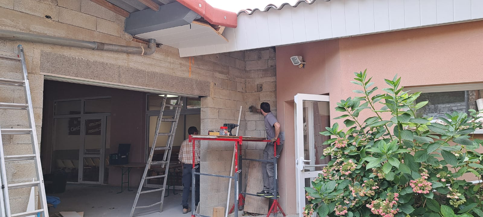 • La dernière marche des escaliers était trop haute. C’est elle qui conditionne la rampe PMR. Elle a donc été supprimée. Et mise en place d’un regard pour la descente d’eau de pluie