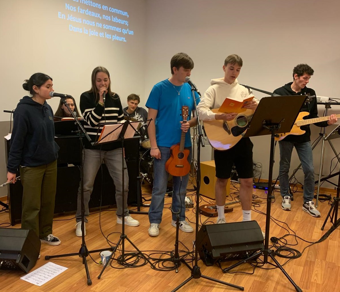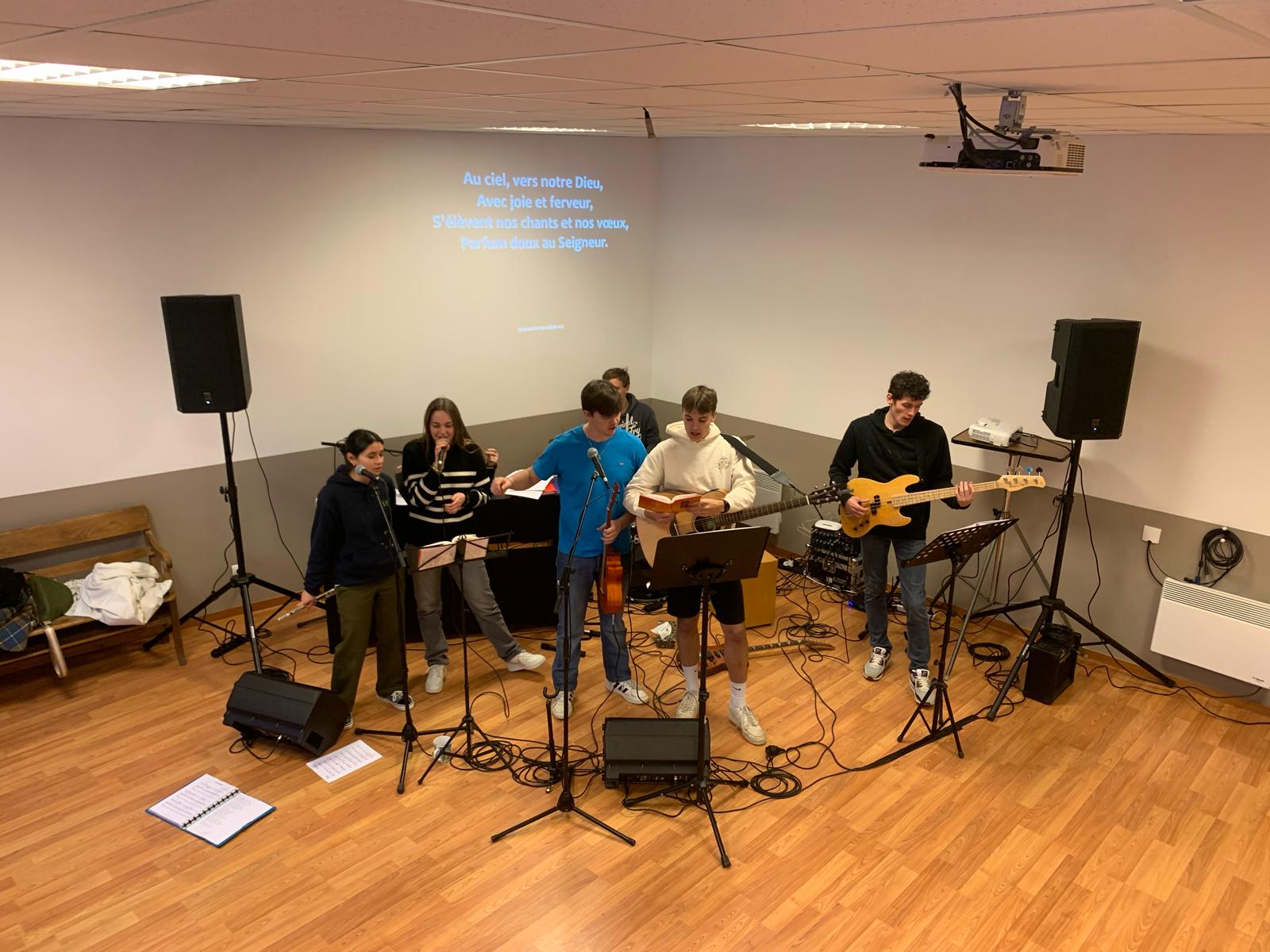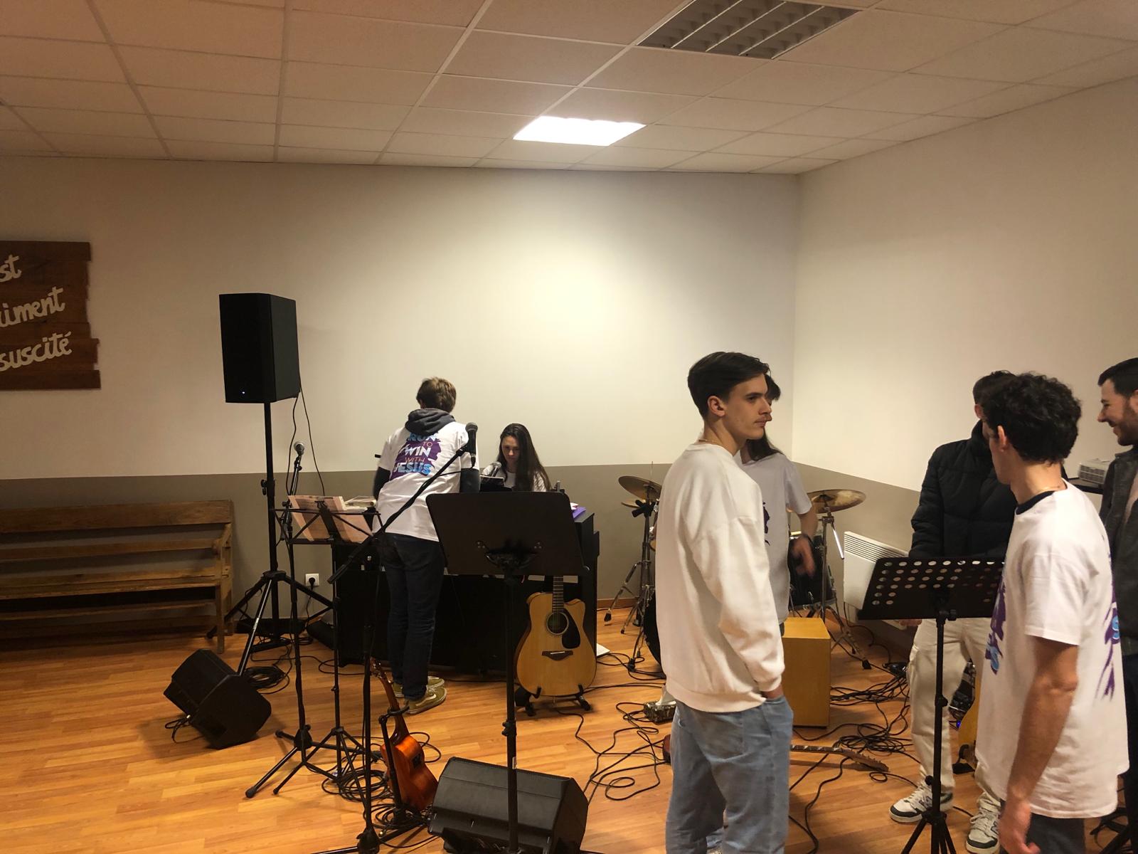 Ce samedi 2 mars 2024, toute l’équipe des jeunes organisateurs de la soirée louange s’est retrouvée dès le matin pour répéter les chants sélectionnés et s’assurer que la technique suivrait.