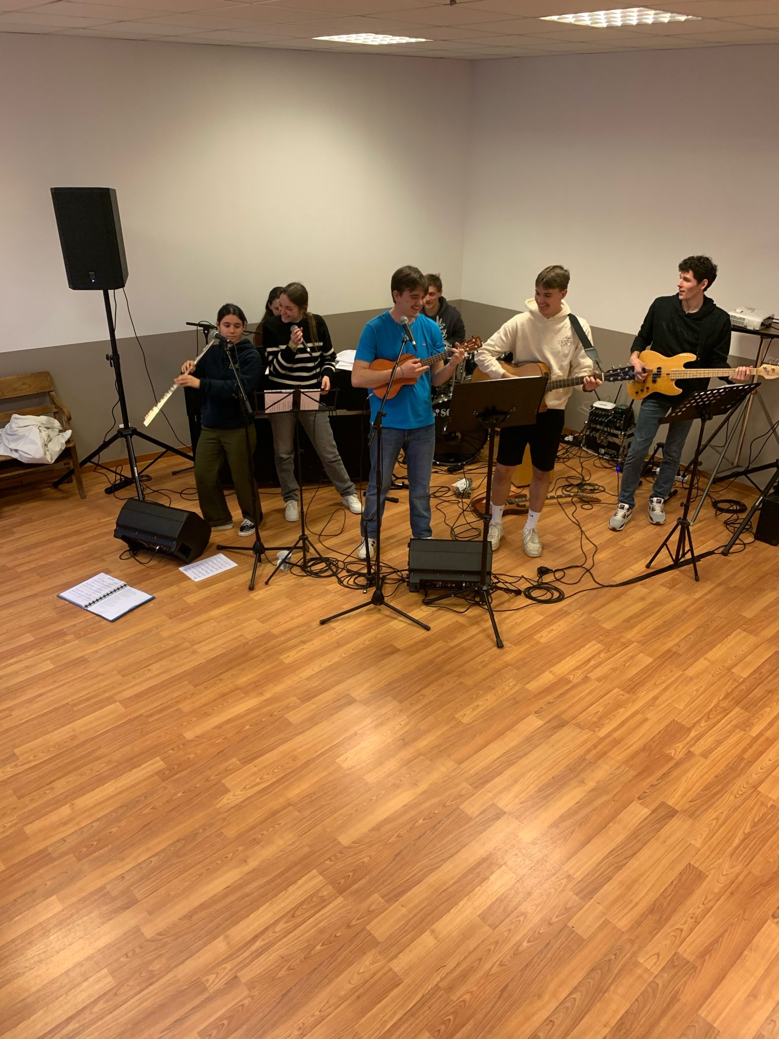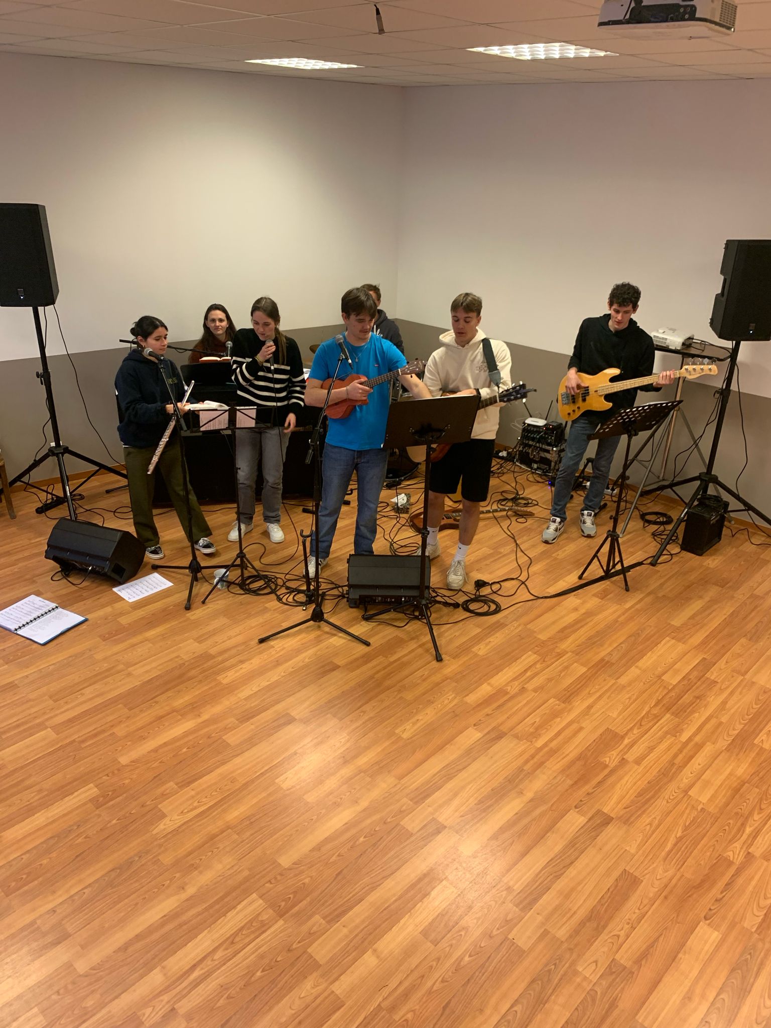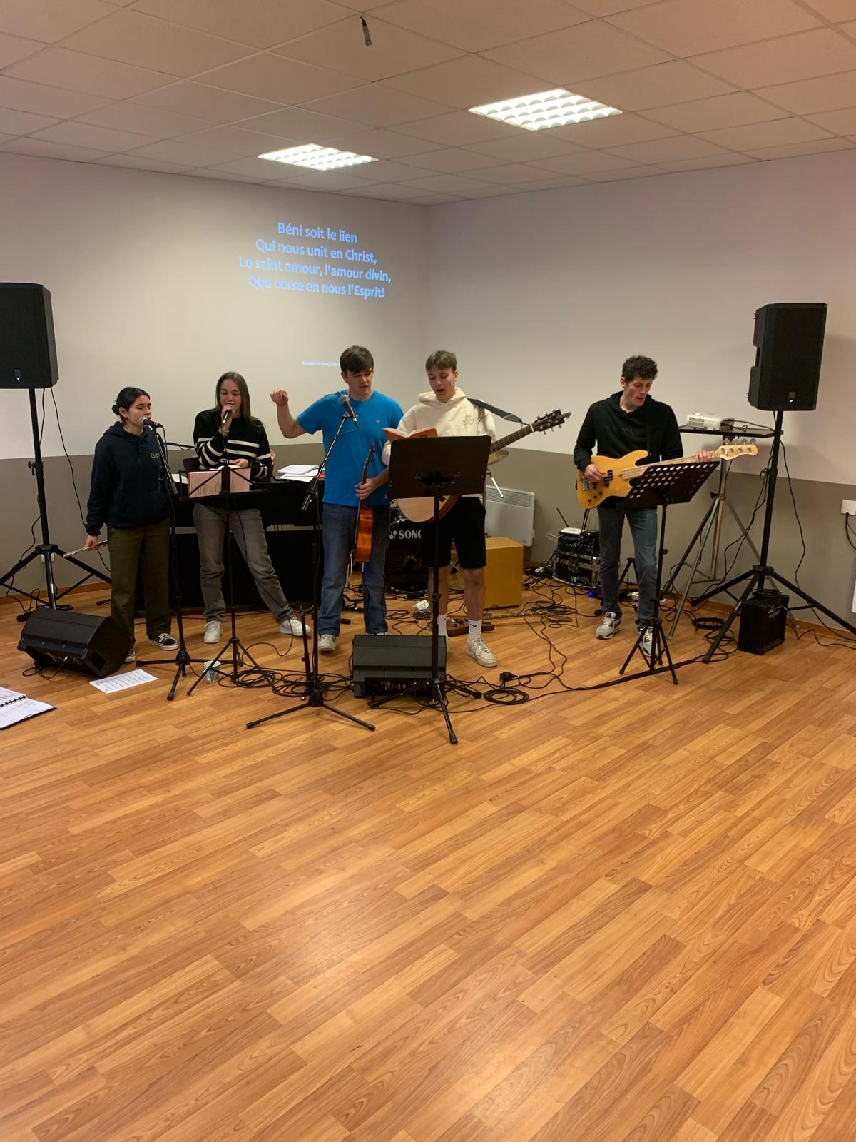 Ce samedi 2 mars 2024, toute l’équipe des jeunes organisateurs de la soirée louange s’est retrouvée dès le matin pour répéter les chants sélectionnés et s’assurer que la technique suivrait.